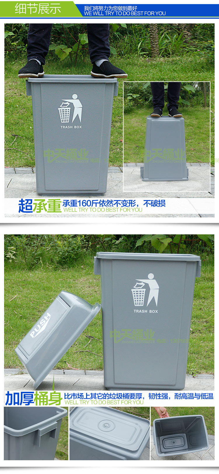2.封閉式帶蓋結構,避免垃圾遺灑.