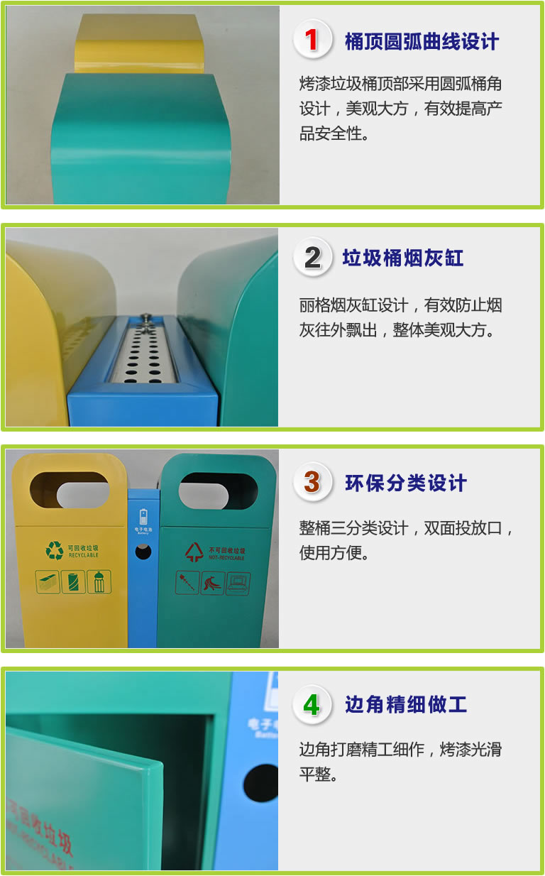 三分類(lèi)設計,符合垃圾分類(lèi)使用需求,更加綠色環(huán)保